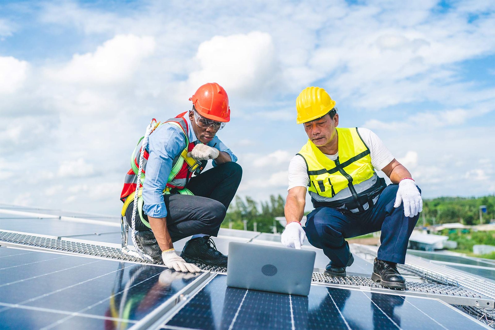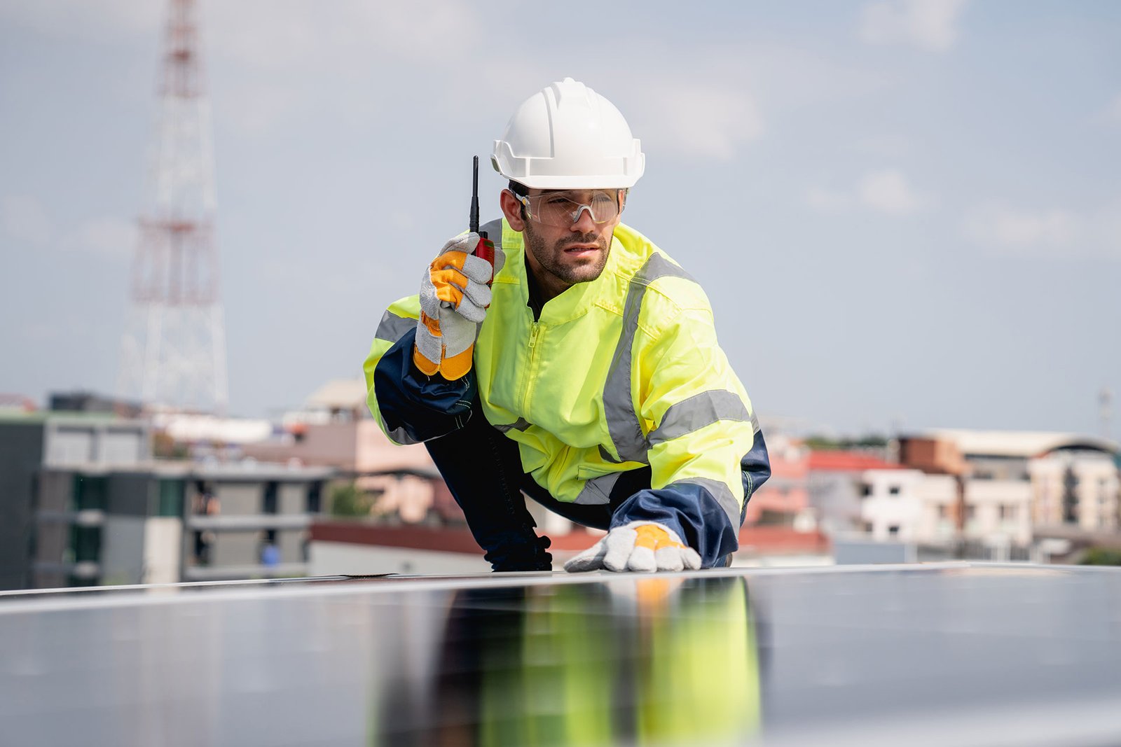Solar façade and rooftop system installed on a 20-story corporate office building, integrated with energy-efficient HVAC systems to reduce operational carbon footprint.